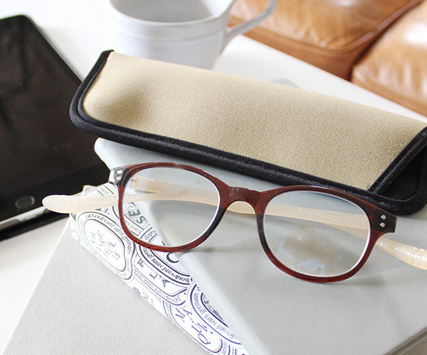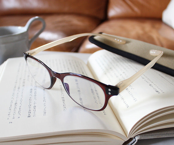 テンプル部分はバネ式のため首に掛けやすく、フィット感があります。フレームは、スタイリッシュでアーバンライクなボストンタイプで、若々しく男女を問わないデザインです。程良い大きさで本を読む時もフレームが視界を邪魔せず快適です。ポリカーボネート製かつ軽量設計により軽やかな掛け心地に。