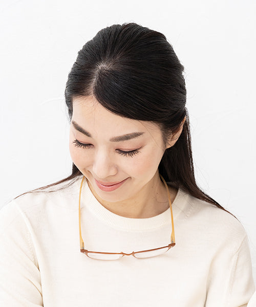 ショッピングや旅行のお供に。使わない時はサッと首元へ。もうどこへ置いた、忘れた、とあちこち探す必要はありません。使いたい時に首元からスマートにご着用いただける新感覚のリーディンググラスです。
